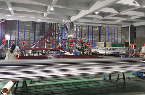 ??公司主要生產(chǎn)設(shè)備包含鋁型材擠壓生產(chǎn)線10套,立式粉末噴涂線2套,臥式粉末噴涂生產(chǎn)線1套,臥式氧化電泳生產(chǎn)線1套,真空木紋生產(chǎn)線4套,及相關(guān)配套生產(chǎn)設(shè)備10多套,其中進(jìn)口先進(jìn)設(shè)備2套,國內(nèi)技術(shù)領(lǐng)先設(shè)備20多套,年生產(chǎn)各型鋁材可超5萬噸。